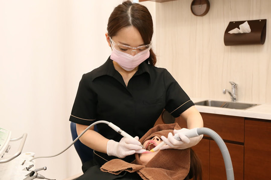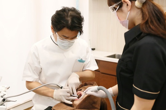 当院では、患者さま一人ひとりに専任の歯科衛生士をおつけし、歯周病治療を行います。複数回にわたって歯石やプラークをきれいに除去しますが、毎回、同じ歯科衛生士が施術を担当します。そのため、お口の中の小さな変化にも気づきやすく、きめ細やかなケアをご提供できます。患者さまのお口の状態に合わせたご家庭での効果的な歯磨きの方法や生活習慣を改善するためのアドバイスなども行います。