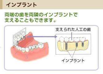 一般的にはブリッジや入れ歯が歯を失った場合の治療法として知られております。