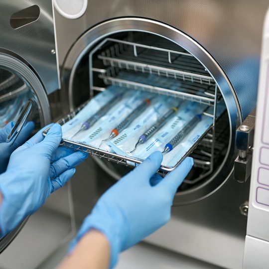 また、患者さまごとに治療器具の消毒・滅菌を徹底しています。もちろん、紙コップやエプロンもディスポーザブル(患者さまごとに使い捨て)にしています。